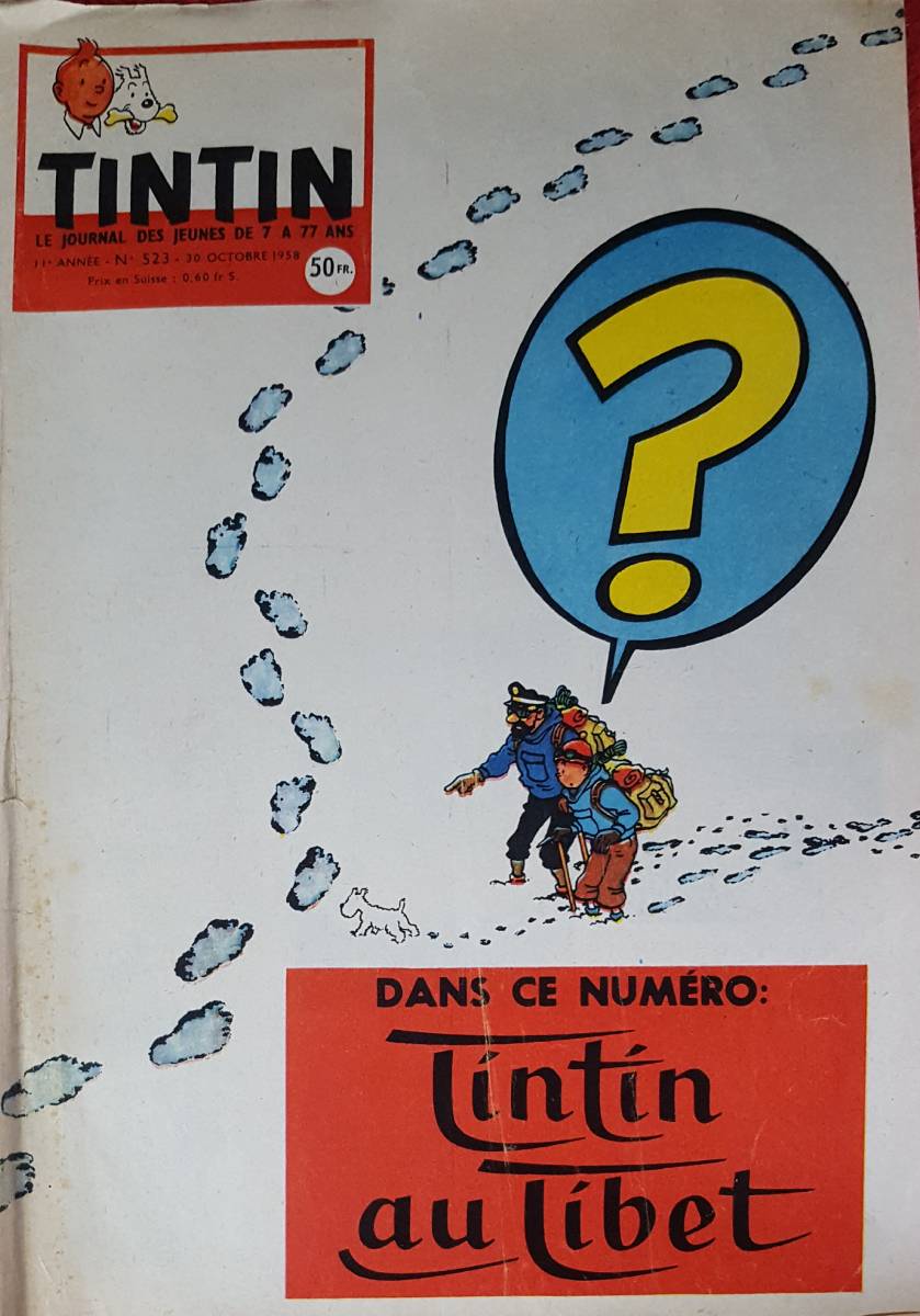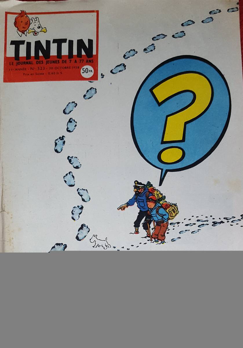 et dans un vieux lot d'hebdo Tintin cette couverture de Tintin au Tibet n°523 du 30 octobre 1958
