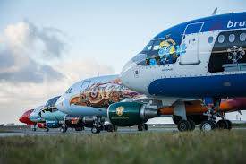 Une image des autres appareils "décorés" de la Brussels Airlines. (Peyo, puis le festival Tomorrowland, Hergé, Magritte et le nez rouge des diables)